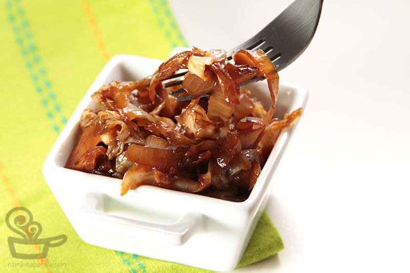 Corte o repolho em fatias bem fininhas. Numa panela grande, aqueça um fio de azeite e refogue a cebola. Quando ela começar a ficar macia, adicione o repolho e a água e mexa de vez em quando. Cozinhe o repolho até ficar de acordo com sua preferência (al dente ou macio), adicione o shoyu, misture bem e deixe o molho dar uma engrossadinha. Sirva quentinha ou em temperatura ambiente.